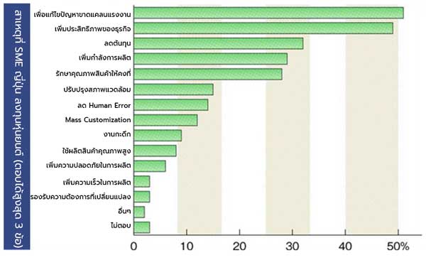 SME ญี่ปุ่น ตัดสินใจลงทุนหุ่นยนต์จากปัจจัยดังนี้ (ตอบได้สูงสุด 3 ข้อ)